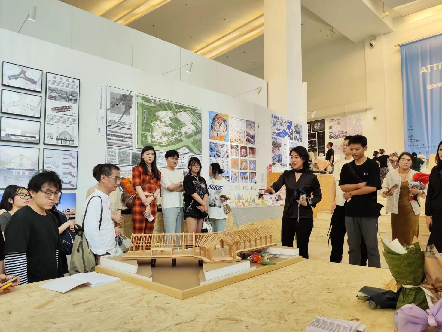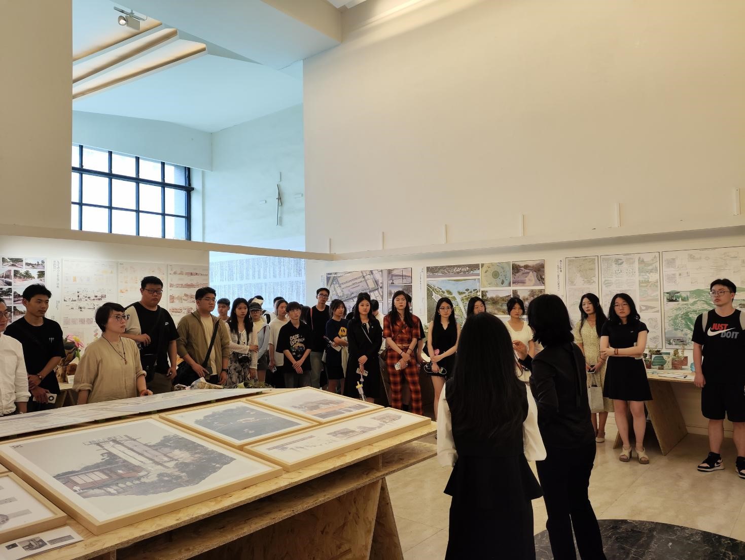 候晓蕾教授先后给同学们讲授了建筑学院研究生毕业作品展和城市设计学院本科毕业作品展。建筑学院研究生毕业作品展位于7号楼一、二层展厅。展览以“自然的态度”为主题,分为“建筑设计及其理论”、“遗产保护与更新”、“城市与乡村”、“室内与风景园林”四大板块。城市设计学院本科毕业作品展位于学校美术馆一楼,展览作品丰富,毕设主要探索以土壤环境为景的城市空间范式,围绕城市空间、城市文化、城市形象展开研究,具有视野前腾性、理论批判性、设计实践性的毕设特点。