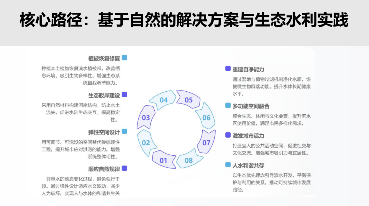 吕桂菊教授从“空间-人-水”关系演进历程切入,深刻解析了人类聚落与水互动关系范式及其背后的技术思想与哲学精神。报告通过对首尔滨水感性城市、上海滨江秀带以及济南百里黄河风景区等实践案例的总结,指出在生态文明建设背景下,应融合生态敏感设计、雨水弹性管理与低影响开发等技术创新,并将传统治水智慧与现代监测技术相结合,从而形成基于自然的空间解决方案和生态水利实践。这一多尺度的系统性方法,为构建更具韧性的城乡水系统开辟了新路径,对推进黄河流域生态保护与高质量发展具有重要的理论价值与实践指导意义。