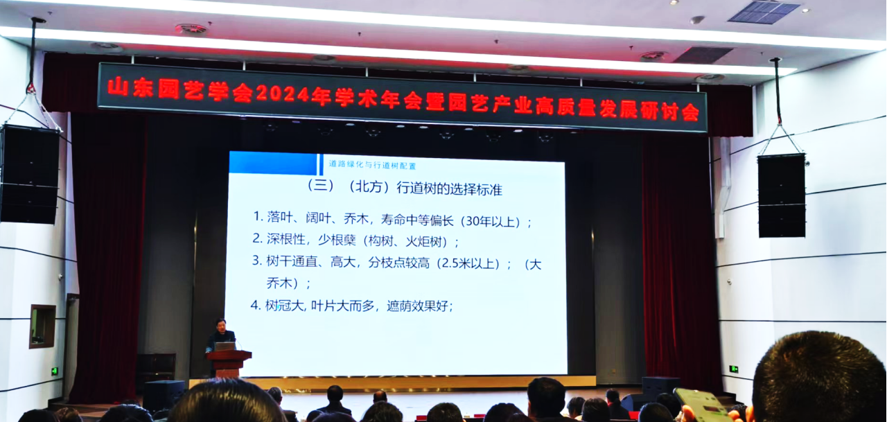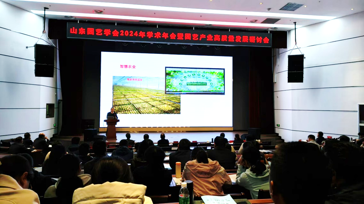 学术研讨交流环节,中国工程院院士南京林业大学张绍铃教授、农业农村部种业管理司品种创新处处长厉建萌、山东农业大学赵兰勇教授、山东农业大学教授魏珉等十余位专家,分别做了《科技赋能果树产业发展与培育新质生产力的思考》、《我国种业创新发展与知识产权保护》、《城市道路绿化与行道树配置》、《抢抓机遇,推动设施园艺产业高质量发展》等主题报告。在乡村振兴发展战略背景下,各位专家分别从各自专业领域角度出发,从城乡园林绿地高质量发展、园艺新品种培育、园艺生产和管理新技术、提升园艺产品质量的技术措施、园艺产品加工与品牌价值培育等,共同出谋划策,为山东省园艺和园林绿化产业高质量发展提供智力和技术支持。