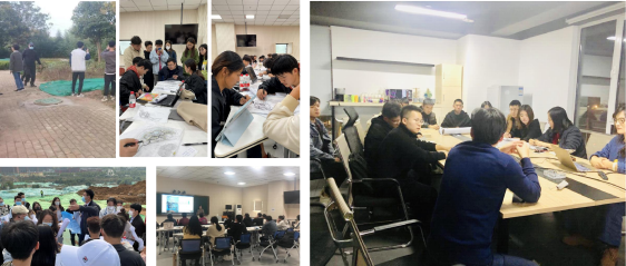 强化教研室社会服务功能,与地方政府、部门、企业建立长效协作机制,深度参与行业活动,带领学生广泛开展设计项目,近三年完成社会实践项目数十项,分别是:徐志摩纪念公园和规划路景观改造设计、76net必赢官网长清校区民艺馆与中轴线景观更新设计、济南市长清区双泉镇满井峪村、济南市长清区口袋公园景观设计、别墅庭院项目、社科院更新项目、济南数科文教产业园景观设计、滨州市青阳镇醴泉村研学基地景观设计项目、海南中棉所农旅休闲度假区设计、聊城市护国隆兴寺景观设计、威海艺术基地规划设计项目、历城区柏树崖村民宿区规划设计项目等。